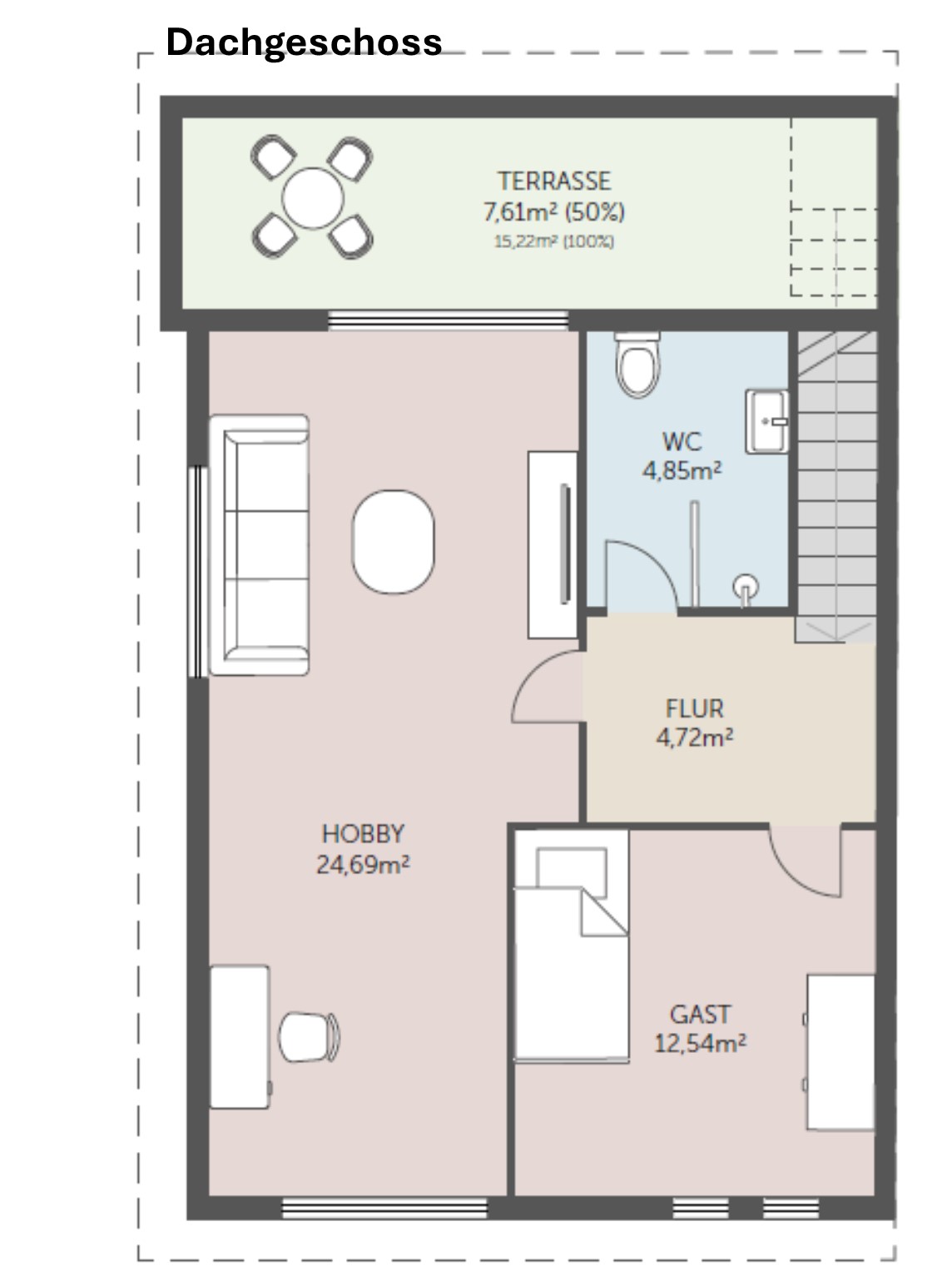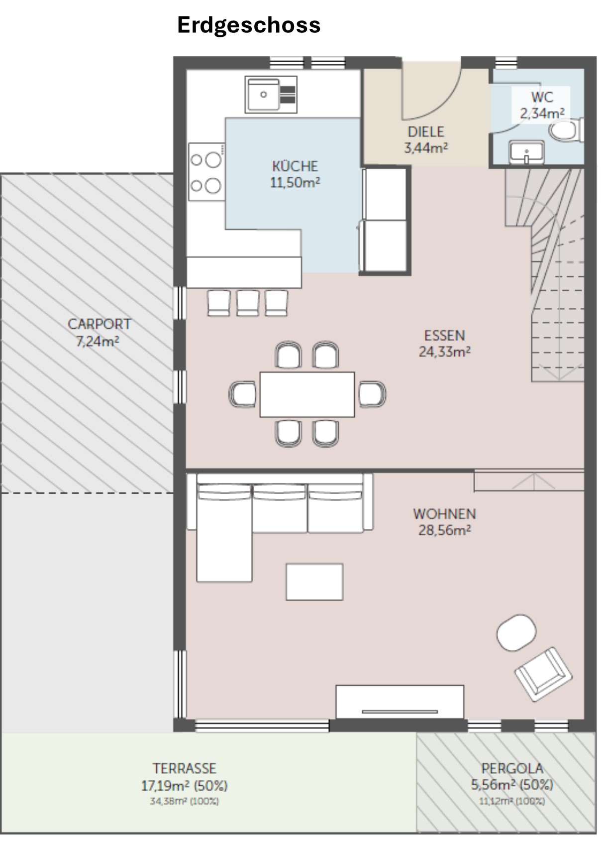 An den Seiten des Hauses gibt es insgesamt die Möglichkeit bis zu vier Autos auf dem Grundstück abzustellen. An der Frontseite stellen Sie Ihr Auto in dem vorhandenen Carport ein, an der auch die Wallbox nutzbar ist. Davor ist Platz für ein weiteres Fahrzeug. An der Hausrückseite liegt die Terrasse des Hauses, die ebenfalls über eine Zufahrt für PKWs verfügt. Flexible Nutzungsmöglichkeiten der Außenanlagen und der junge Garten mit Süd-West-Ausrichtung ermöglichen Ihnen flexible Gestaltung- und Nutzungsmöglichkeiten.