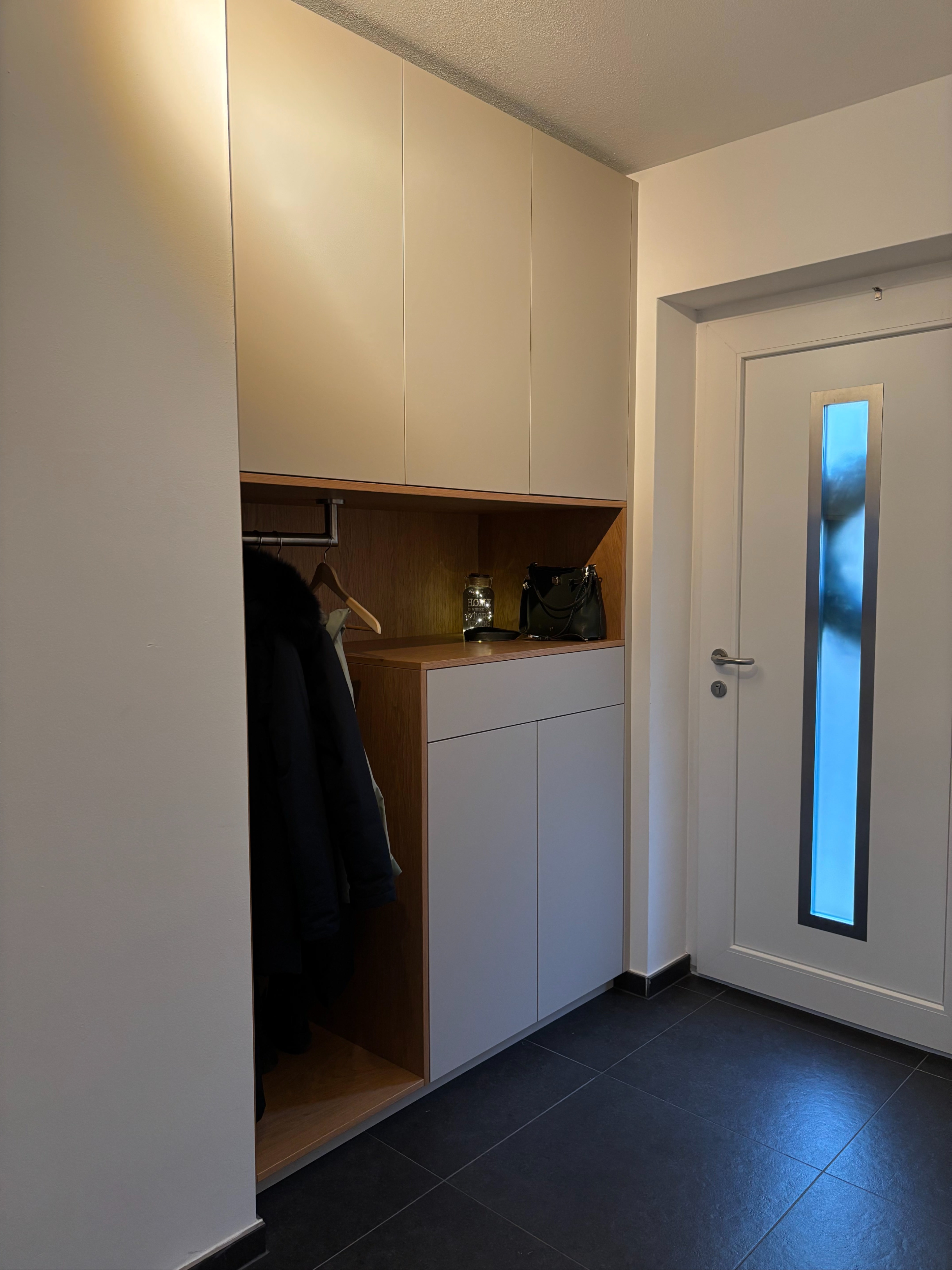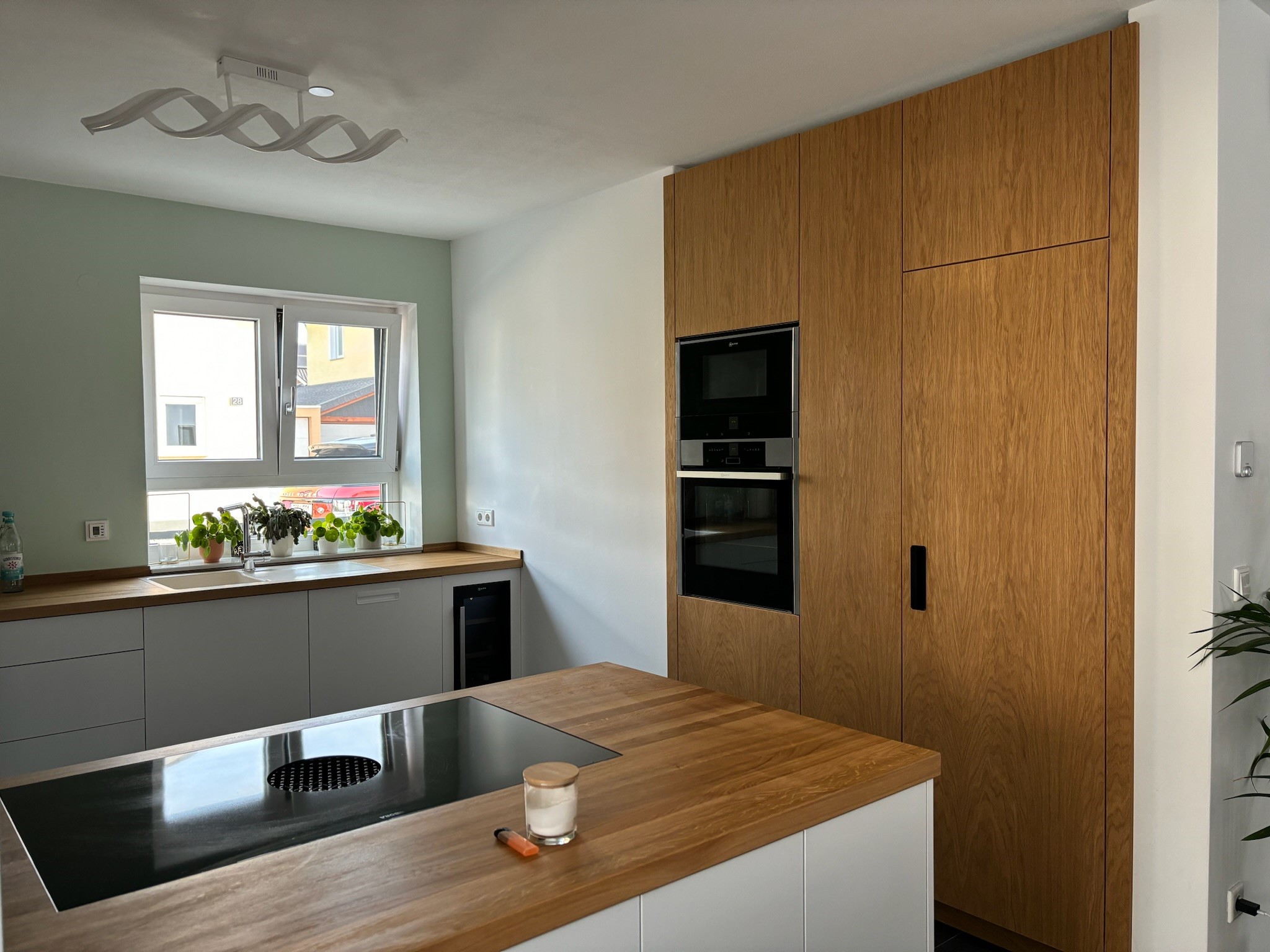 – Hochwertige maßgeschneiderte, offene Einbauküche (Neuwert 2022 ca. € 55.000) inkl. allen wünschenswerten Elektrogeräten und einem Weinkühlschrank sowie maßgeschneiderte Einbauschränke im Eingangsbereich als Garderobe sowie im Ankleidezimmer (Neuwert: ca. € 55.000)
