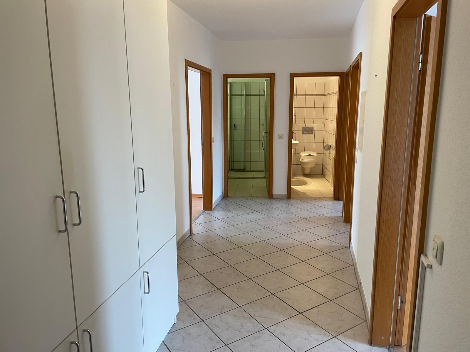 Durch den hellgefliesten Eingangs- und Flurbereich, der mit einem schlichten Einbauschrank versehen ist, betreten Sie diese großzügige Wohnung.